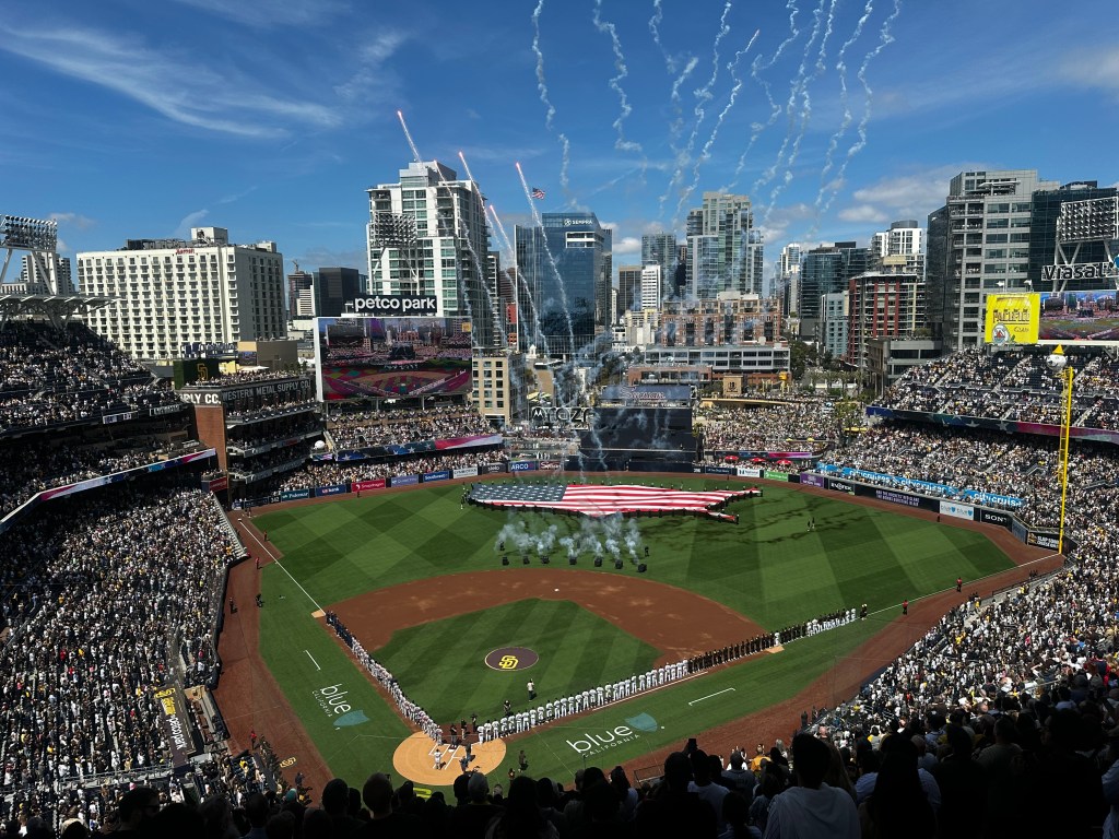 From Section 303 at Petco Park – The Padres defeat the Braves 7-4 on Opening Day of the 2025 MLB Season; in front of 45,568 fans, the biggest Opening Day crowd in Petco Park history.